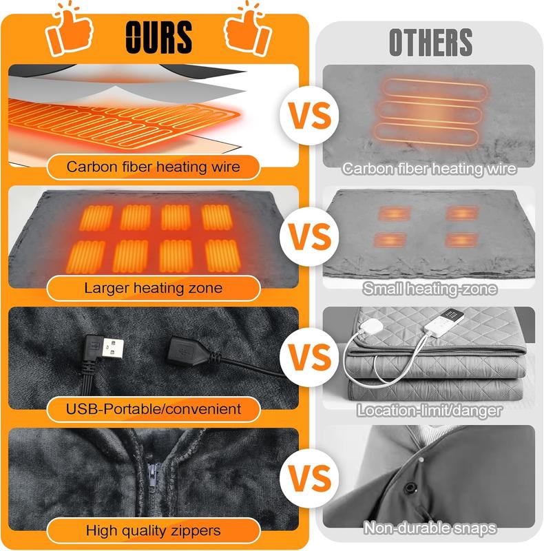 ✅ Instant Warmth: Feel cozy in just 30 seconds. ✅ Freedom to Explore: Camp longer, travel further — no cold can stop you. ✅ All-Day Comfort: Soft fleece hugs you in gentle heat that lasts for hours. ✅ No Fire, No Problem: Stay safe while keeping warm. ✅ Easy to Use: Plug it into any power bank. That’s it!